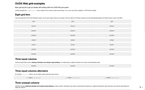 To get working OUDS Web examples based on the Bootstrap ones, you need to replace all bootstrap occurrences with oudsWeb in some files.